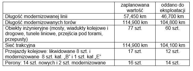 W ramach realizacji inwestycji 14 peronów zostało już odnowionych. Obiekty wyposażono w nowe wiaty, ławki czy kosze oraz dostosowano do potrzeb osób o ograniczonej mobilności. Finalizowane są prace w Jaktorowie i Międzyborowie, gdzie perony z wyspowych zostaną przebudowane na jednokrawędziowe przeciwległe. Kończą się również roboty w Żyrardowie. Na trasie działa także nowy system sterowania ruchem. Na zwiększenie poziomu bezpieczeństwa wpływa również remont blisko 20 przejazdów kolejowo-drogowych. Są one wyposażane w nowe urządzenia zabezpieczające – rogatki, światła ostrzegawcze, sygnalizatory dźwiękowe, a także w monitoring.